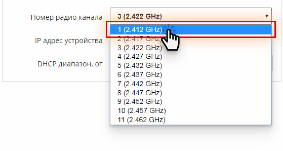 DHCP диапазон - установите диапазон IP адресов в котором будет осуществляться связь с модулем Wi-Fi.